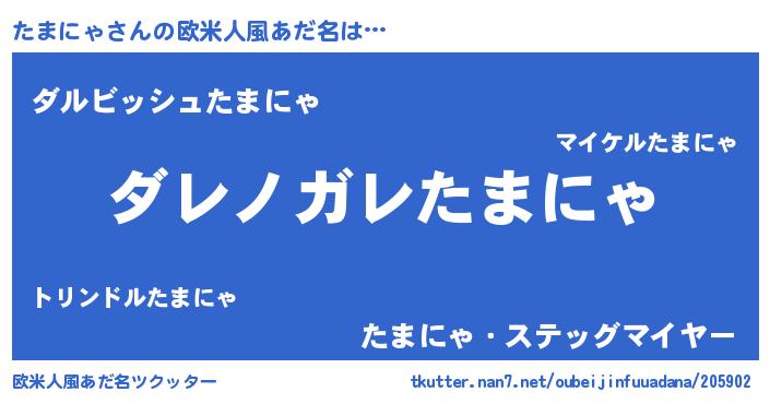 | 女子向けラノベタイトル風あだ名 | 『乙女ゲームの破滅フラグしかない悪役たまにゃに転生してしまった…』 |