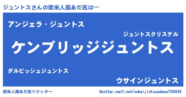 | 男性向けラノベタイトル風あだ名 | 『Re:ジュントスから始める異世界生活』 |