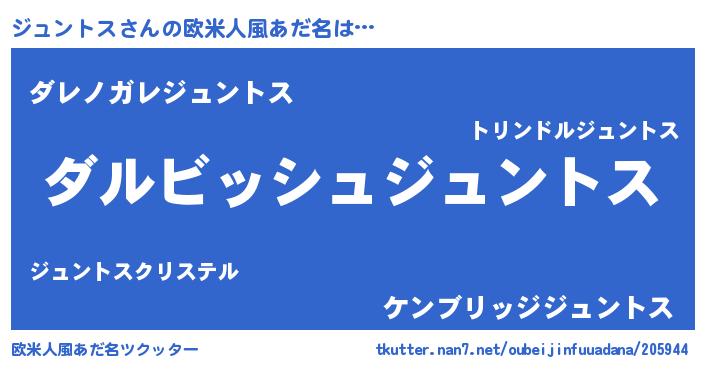 | 男性向けラノベタイトル風あだ名 | 『ジュントスという概念が存在しない退屈な世界 』 |