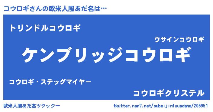 | 意味不明あだ名 | 『自称コウロギ』『もやし科コウロギ属』 |