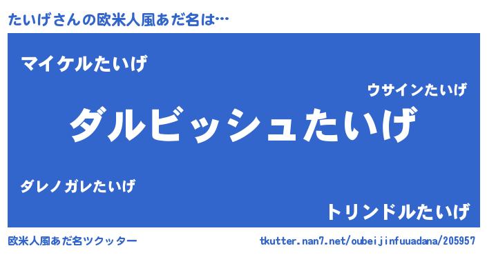 | ヘコむあだ名 | 『たいげ(震え声)』『たいもー』 |