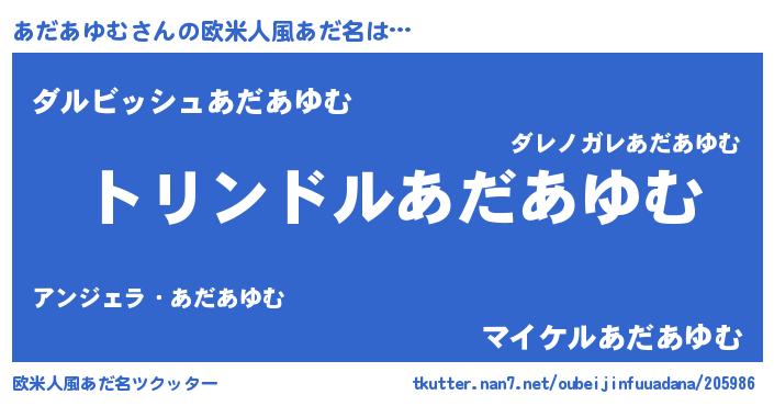| 男性向けラノベタイトル風あだ名 | 『アダアユムスレイヤー』 |