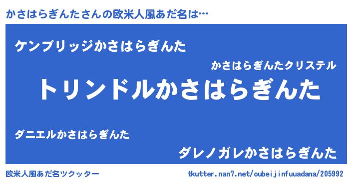 | 男性向けラノベタイトル風あだ名 | 『カサハラギンタスレイヤー』 |