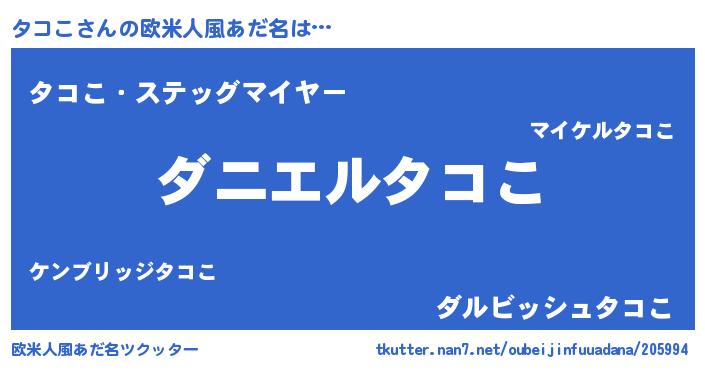 | ヒーロー風カッコイイあだ名 | 『正義の使者タコこ』『ネオタココ』 |