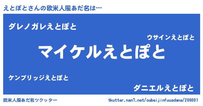 | 女子向けラノベタイトル風あだ名 | 『えとぽと姫と円卓の騎士』 |