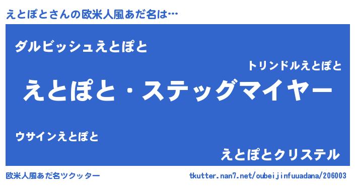 | ヒーロー風カッコイイあだ名 | 『ネオエトポト』『ウルトラえとぽとマン』 |