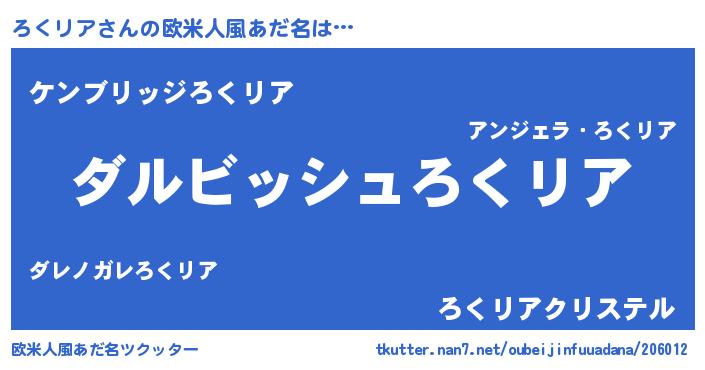 | 胡散臭い通販商品みたいなあだ名 | 『絶対に幸福をもたらす健康食品…その名も「ろくリア」』 |