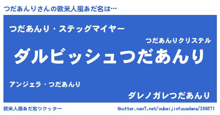 | 意味不明あだ名 | 『永久保存つだあんり』 |