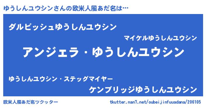 | 男性向けラノベタイトル風あだ名 | 『ゆうしんユウシンに滅ぼされるだけの簡単なお仕事です』 |