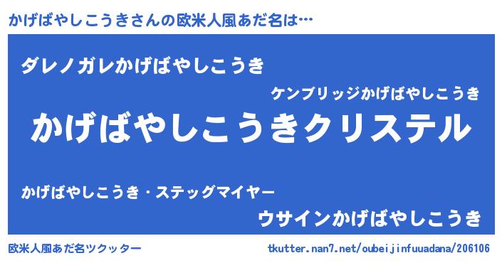 | 意味不明あだ名 | 『かげばやしこうきフォーエバー』 |