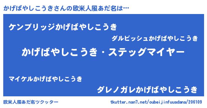 | ヘコむあだ名 | 『かげばやしこうき(爆)』『かげにゅー』 |