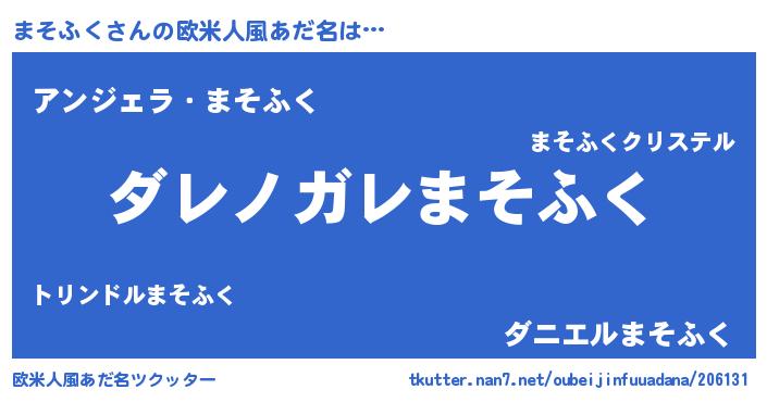 | 意味不明あだ名 | 『住所不定無職まそふく(74歳)』 |