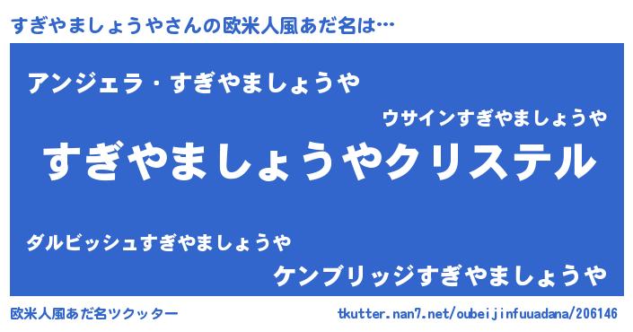 | 意味不明あだ名 | 『すぎやましょうやフォーエバー』 |