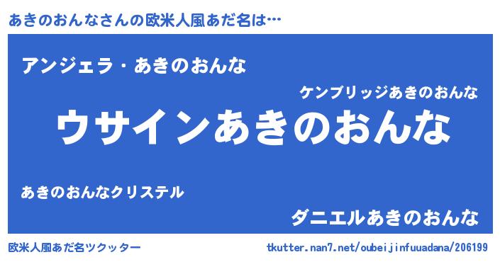 | 男性向けラノベタイトル風あだ名 | 『あきのおんなの嫁は女の子じゃないと思った?』 |