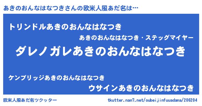 | 意味不明あだ名 | 『住所不定無職あきのおんなはなつき(14歳)』 |