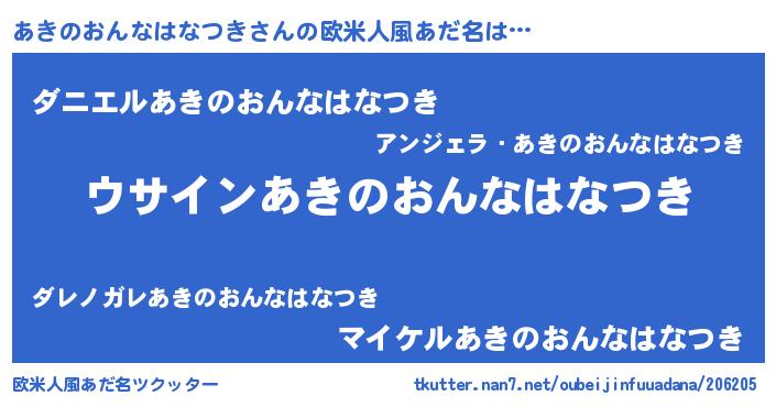 | 女子向けラノベタイトル風あだ名 | 『あきのおんなはなつきは平凡を望む』 |
