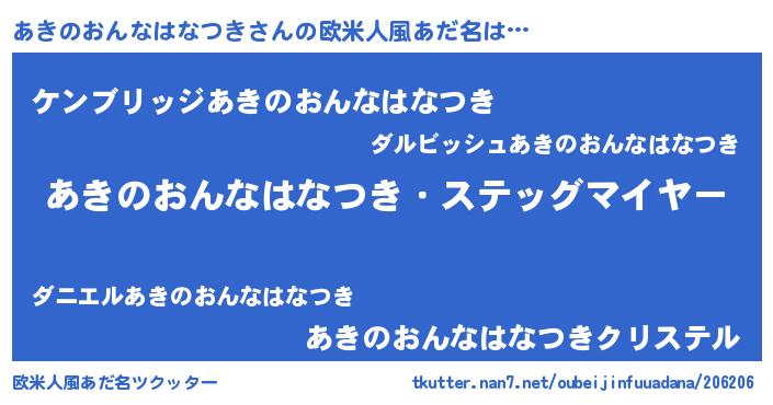 | 意味不明あだ名 | 『自称あきのおんなはなつき』 |