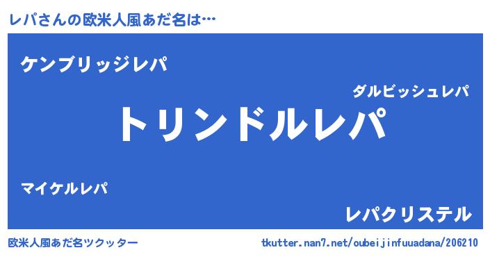 | 男性向けラノベタイトル風あだ名 | 『転生したらレパだった件』『レパの憂鬱』 |