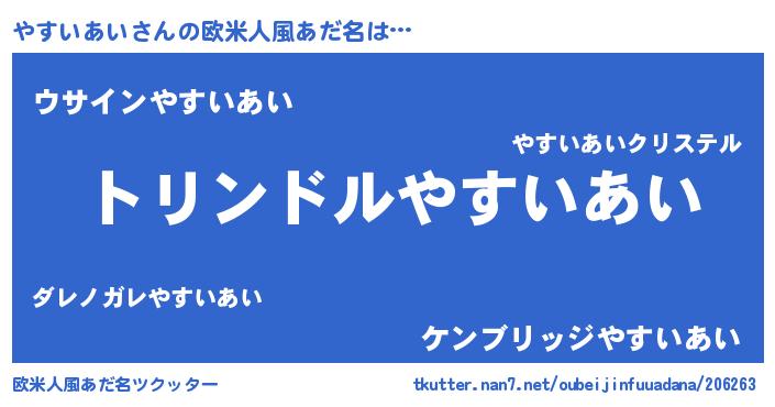 | ポケモン風あだ名 | 『ヤスキング』『ヒヤスイアイ』 |