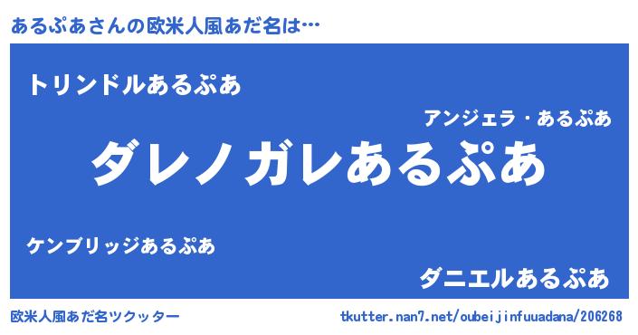 | 男性向けラノベタイトル風あだ名 | 『魔弾の王とあるぷあ』 |