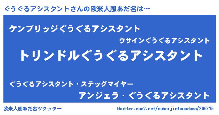 男性向けラノベタイトル風あだ名 | 『ぐうぐるアシスタント~年齢イコール彼女いない歴の魔法使い~』 |