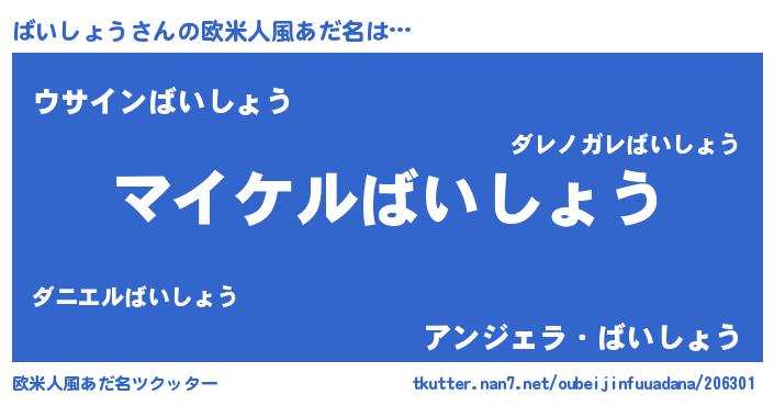 | 男性向けラノベタイトル風あだ名 | 『ばいしょうの憂鬱』 |