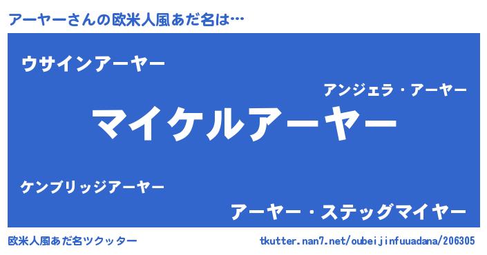 | 女子向けラノベタイトル風あだ名 | 『アーヤー姫と円卓の騎士』 |