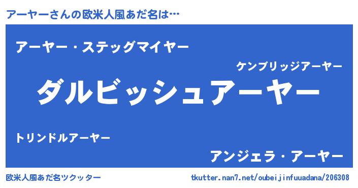 | 男性向けラノベタイトル風あだ名 | 『アーヤーという概念が存在しない退屈な世界 』 |