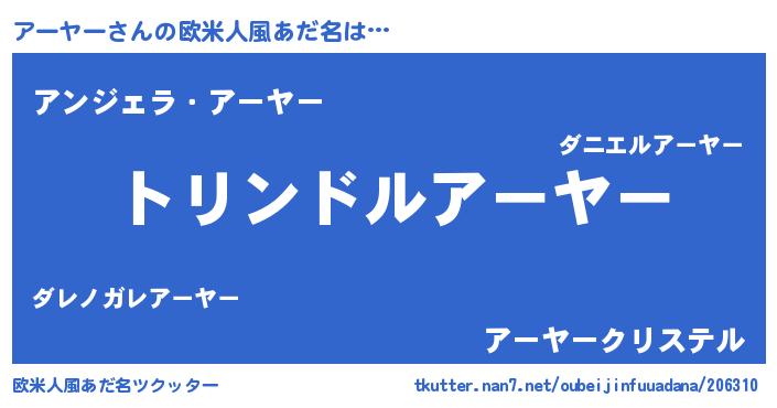 | 胡散臭い通販商品みたいなあだ名 | 『運命の人と巡り会える高級そうな絵画…その名も「アーヤー」』 |