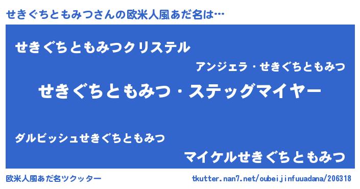 | 意味不明あだ名 | 『せきぐちともみつフォーエバー』 |