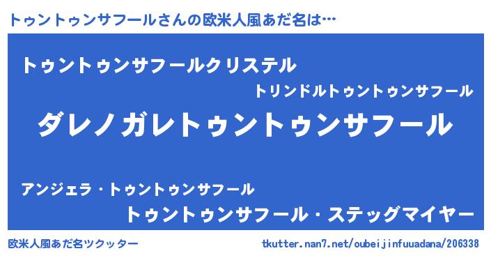 | 女子向けラノベタイトル風あだ名 | 『乙女ゲームの破滅フラグしかない悪役トゥントゥンサフールに転生してしまった…』 |