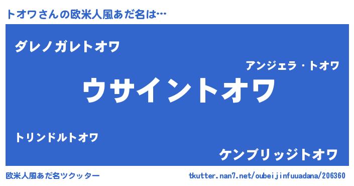 女子向けラノベタイトル風あだ名 | 『トオワは平凡を望む』『闇のトオワ』 |
