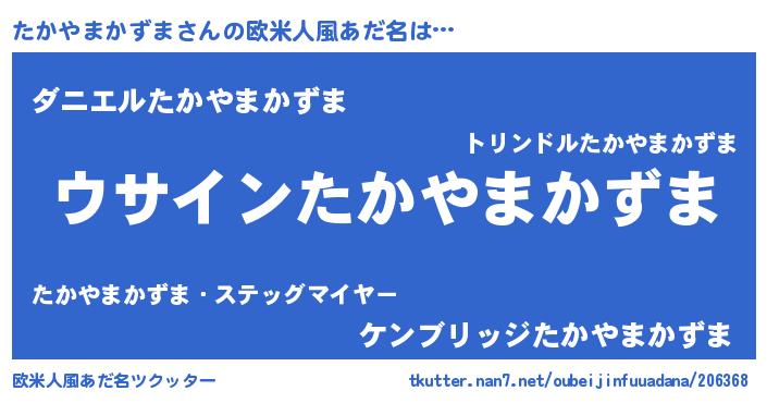 男性向けラノベタイトル風あだ名 | 『たかやまかずまの嫁は女の子じゃないと思った?』 |