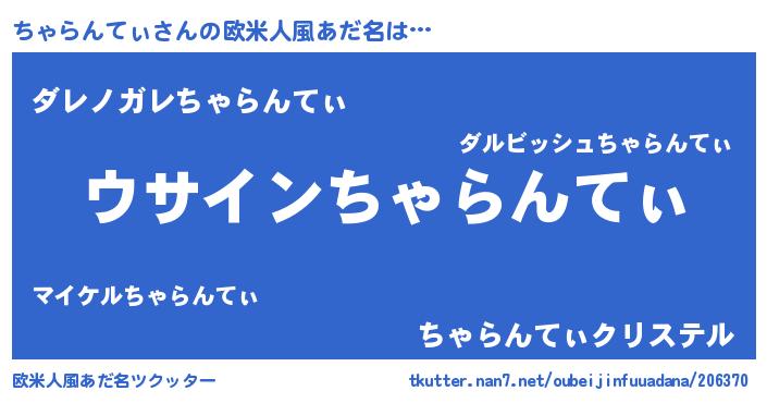 女子向けラノベタイトル風あだ名 | 『ちゃらんてぃは平凡を望む』 |