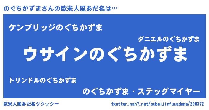 女子向けラノベタイトル風あだ名 | 『のぐちかずまの卵を拾いまして』 |