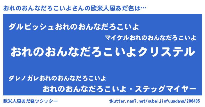 ファンタジー風あだ名 | 『エターナルオレノオンナダロコイヨー』 |