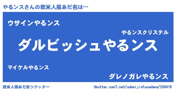 | 男性向けラノベタイトル風あだ名 | 『やるンスという概念が存在しない退屈な世界 』 |
