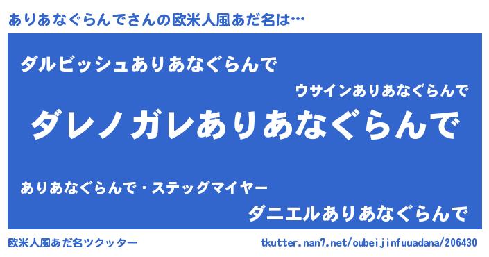 | 意味不明あだ名 | 『住所不定無職ありあなぐらんで(8歳)』 |
