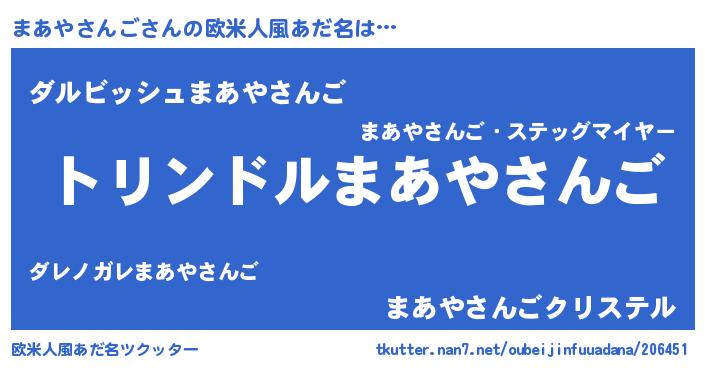 | 男性向けラノベタイトル風あだ名 | 『マアヤサンゴスレイヤー』 |