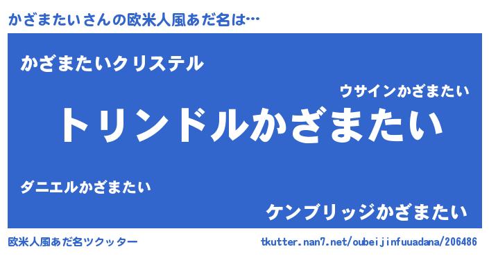 | 男性向けラノベタイトル風あだ名 | 『かざまたい~年齢イコール彼女いない歴の魔法使い~』 |