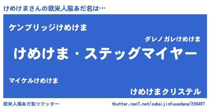 | 男性向けラノベタイトル風あだ名 | 『うちのけめけまが世界を掌握している!』 |