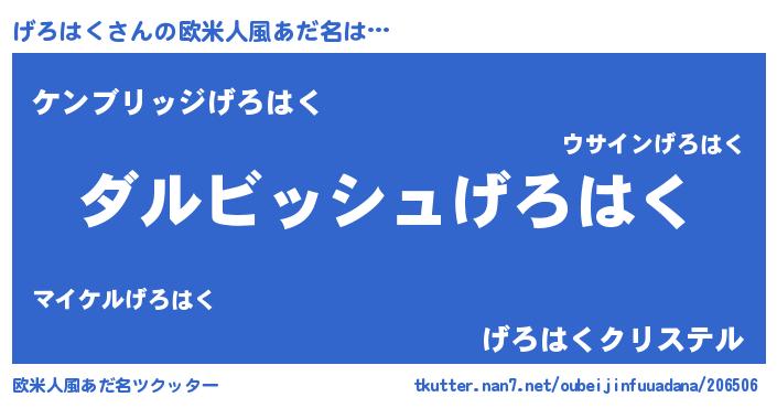 | 男性向けラノベタイトル風あだ名 | 『げろはくという概念が存在しない退屈な世界 』 |