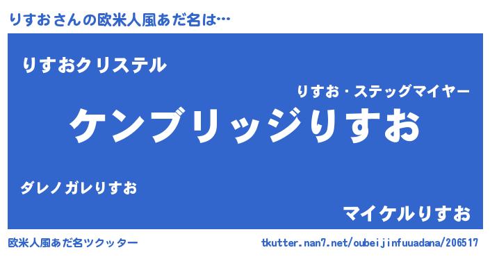 | 男性向けラノベタイトル風あだ名 | 『Re:りすおから始める異世界生活』 |