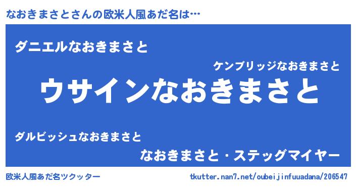| 男性向けラノベタイトル風あだ名 | 『なおきまさとの嫁は女の子じゃないと思った?』 |