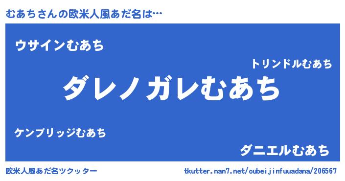 | 男性向けラノベタイトル風あだ名 | 『魔弾の王とむあち』『ムアチスレイヤー』 |