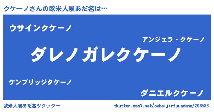 | 意味不明あだ名 | 『住所不定無職クケーノ(40歳)』 |