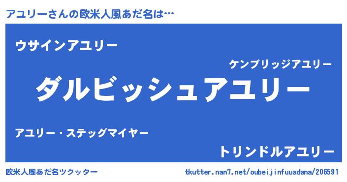 | 男性向けラノベタイトル風あだ名 | 『アユリーという概念が存在しない退屈な世界 』 |
