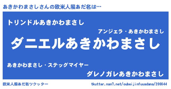| ヘコむあだ名 | 『あきかわまさし(小並感)』『あきぷりん』 |