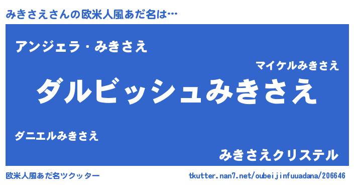 | 男性向けラノベタイトル風あだ名 | 『みきさえという概念が存在しない退屈な世界 』 |