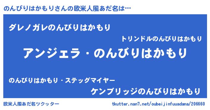 | 男性向けラノベタイトル風あだ名 | 『はたらくのんびりはかもりさま!』 |